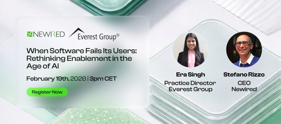 👉 Join Newired and Everest Group to explore why traditional training and even modern digital adoption initiatives are no longer sufficient—and why the market is now shifting toward a broader concept of user enablement.